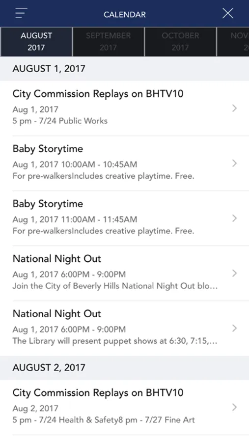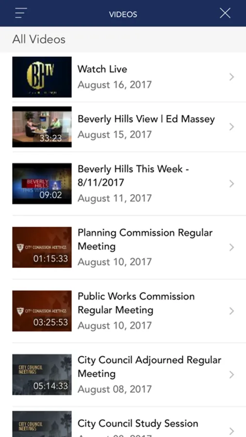 This app promotes community events, allows users to view channel BH10 live and other videos, keep up to date with current e-notices, and find contact information for the City of Beverly Hills.