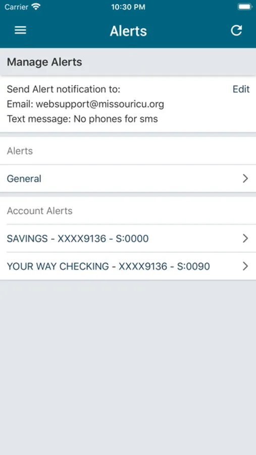 • Create alerts – receive alerts via email, text or push notification for balances, transactions, and payments