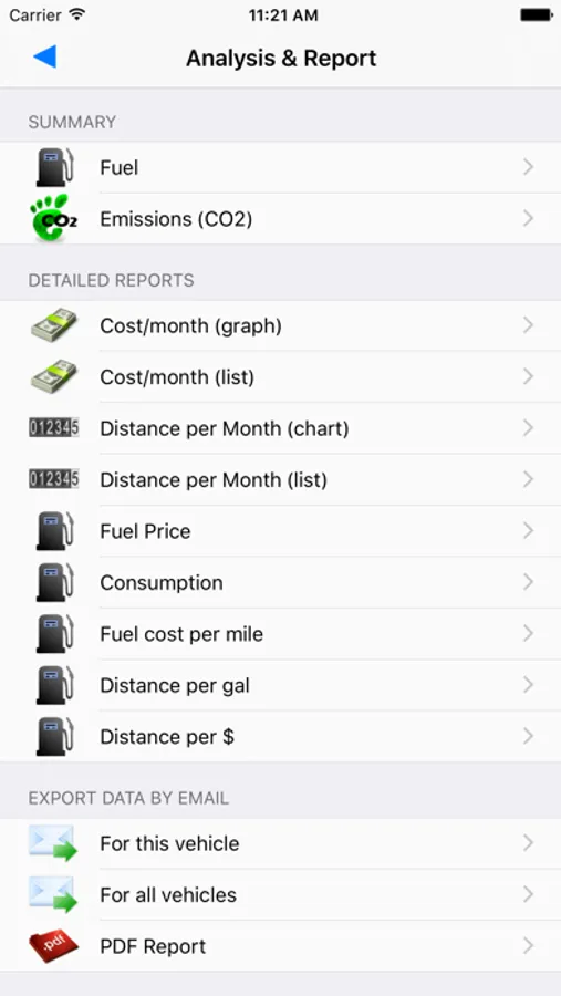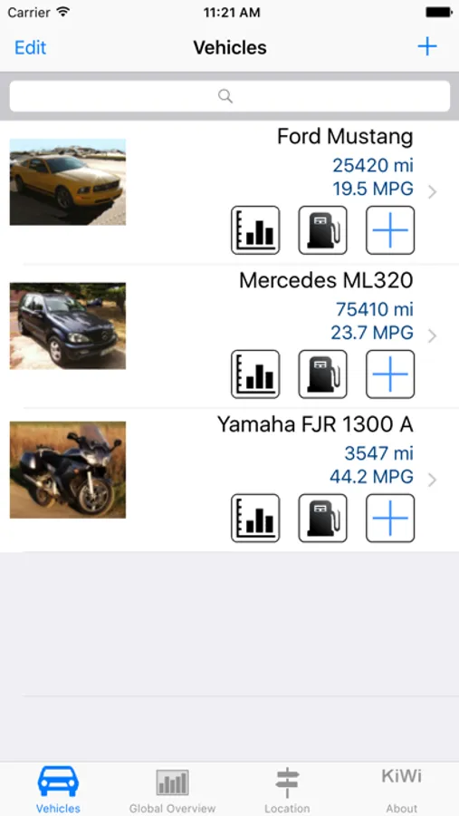 For each vehicle, input your fill-ups in a matter of seconds, and keep track of the evolution of several parameters in different ways (overview, graphs or lists):