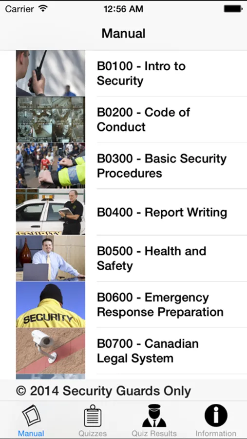 Security Guard 101 is the must-have, indispensable app for anyone interested in becoming a security professional. Written by security experts with easy-to-read sections ranging from introduction to security to code of conduct, heath and safety, the legal system, use of force, emergency first aid and much more. Security Guard 101 also includes 10-question randomized quizzes after each section - which can also be accessed directly - and features a 60-question mock final test to help users better prepare for certification. Security Guard 101 is available for both iPhone and iPad.