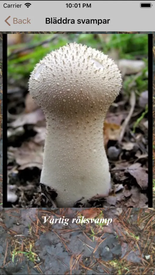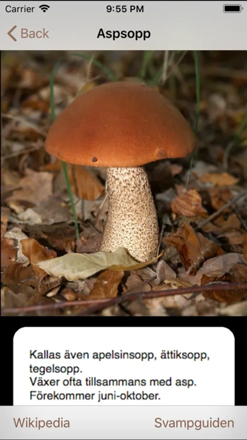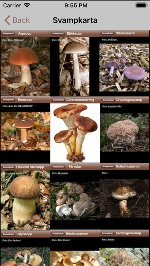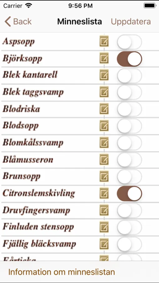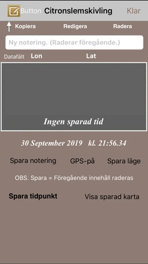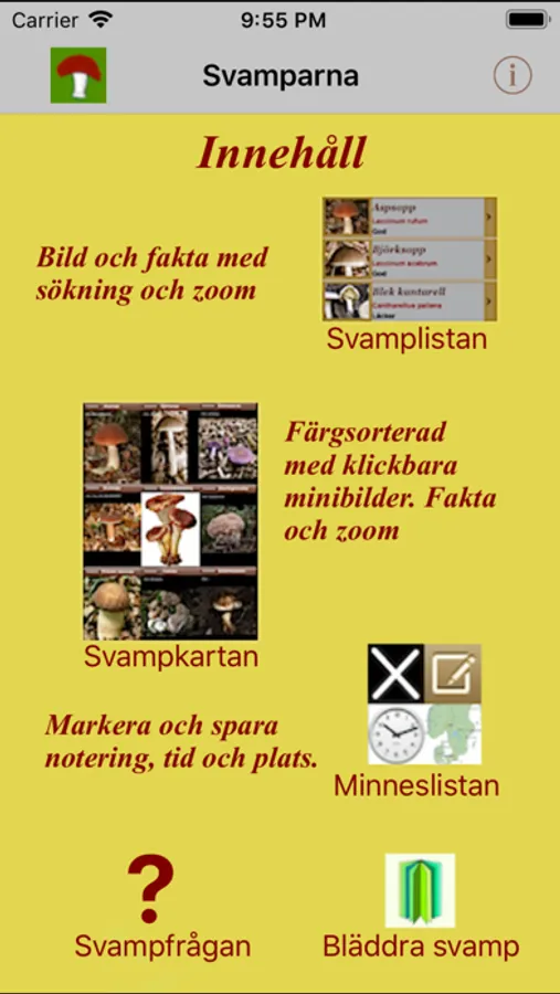 Man kan markera en svamp, spara noteringar, tider samt fyndplats med telefonens GPS.