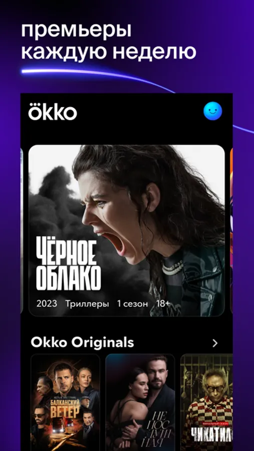 Okko — онлайн-кинотеатр, где смотрят кино и сериалы, мультфильмы и лекции, концерты, спектакли и ТВ-каналы. Каждую неделю появляются новинки. Для детей есть специальный профиль с фильтрами по возрастам. Для болельщиков — «Okko Спорт» с трансляциями футбольных матчей, киберспортивных турниров и боёв MMA.
