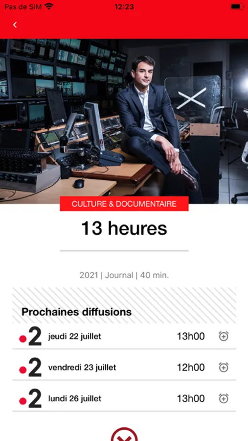 Ne ratez aucune diffusion : recevez une notification 10 minutes avant le début de vos émissions préférées.