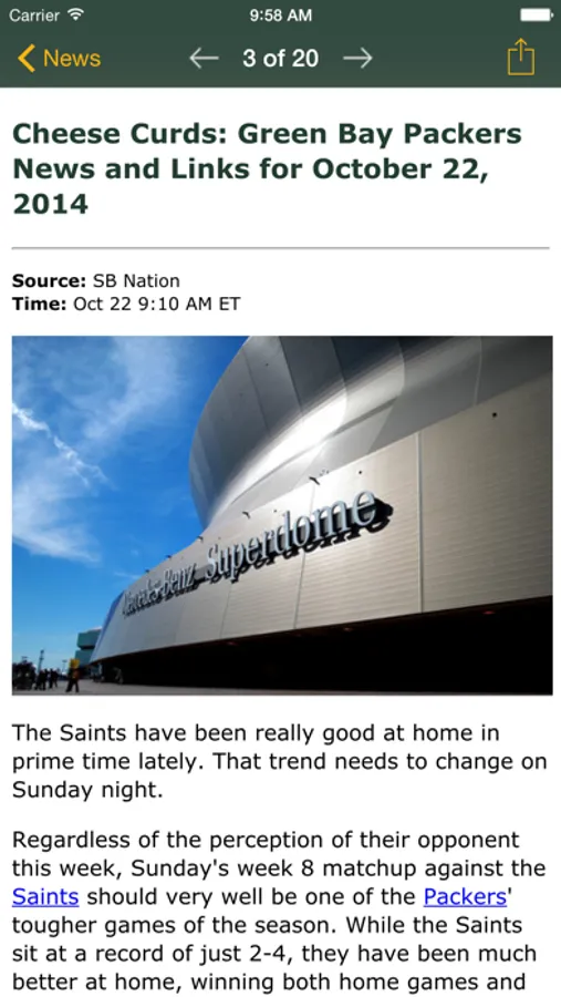 Get fast and reliable news for the Green Bay Packers on your iPhone and iPad from more than a dozen sources! Choose any or all news publications so you'll only get news from the sources you care about. Read inside the app, in your browser, tweet and e-mail links to your favorite articles.