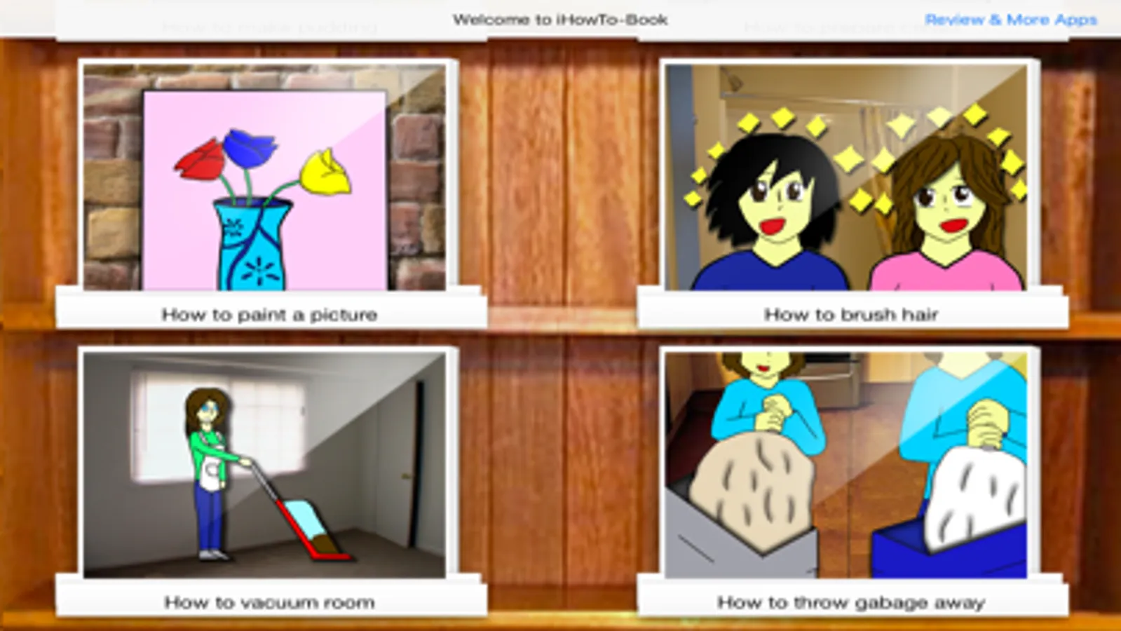 iHowTo-Book is an interactive children's book application that enables all children to read a book independently. Unlike other children's books, this application focuses on teaching children the skills of Activities for Daily Living (ADL). It provides natural, calm voices with beautiful original artwork.