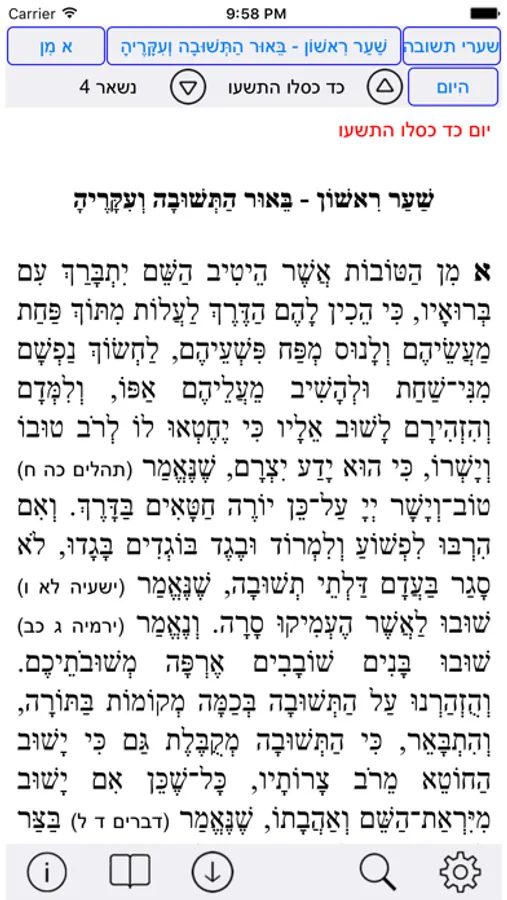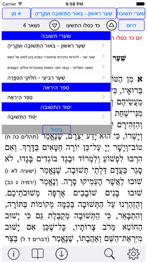Shaare Teshuva and Sefer Hyira and Yesod Hateshuva of Rabenu Yona Girondi. with Nikud and search option. Bookmarks, and study plan.