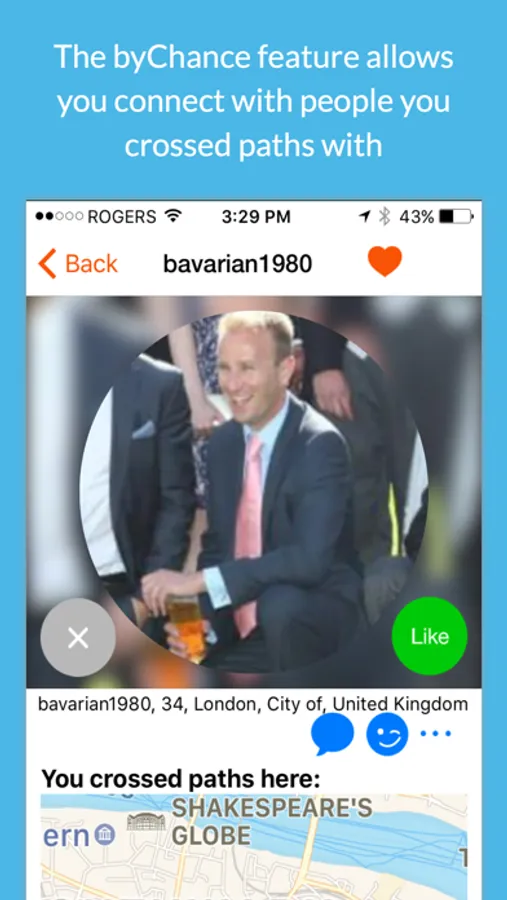 - New byChance feature introduces you to singles that you crossed paths with throughout your day.