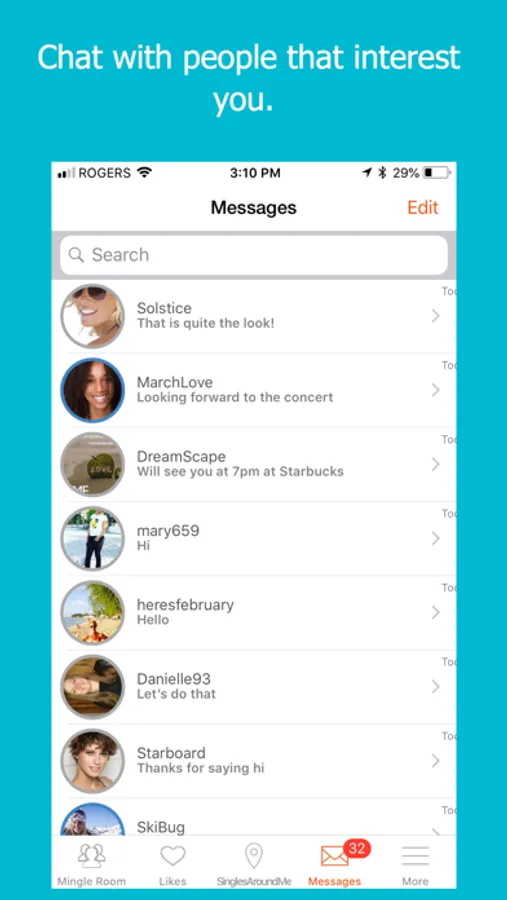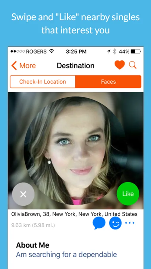 - "Like" or "dislike" people and keep a fresh list of only those people who interest you.