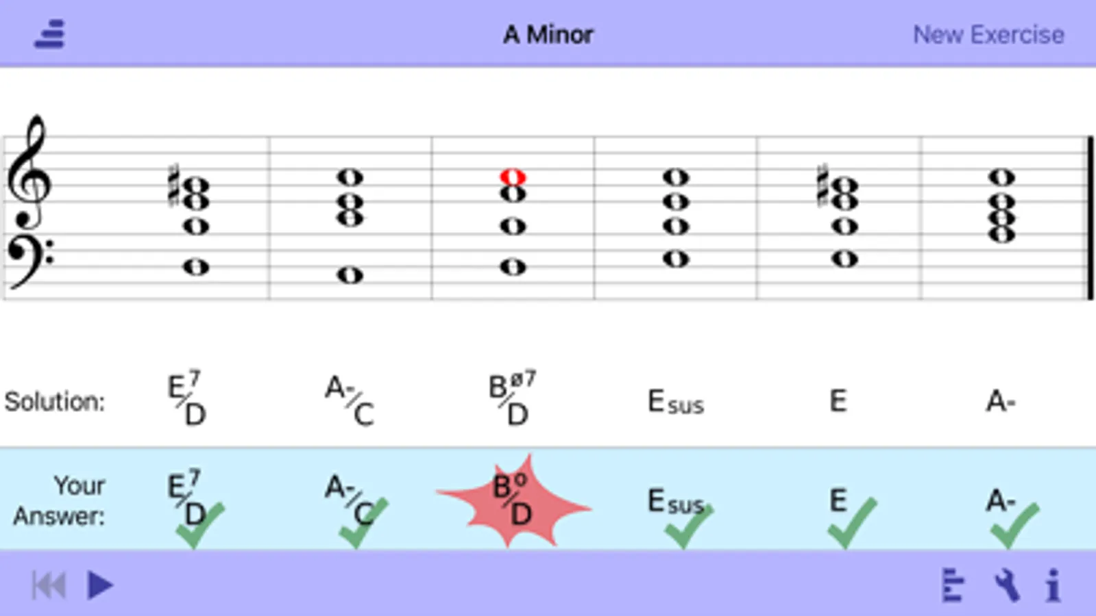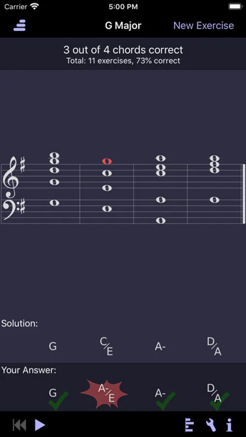 • Understand your mistakes even better by tapping, swiping or pressing single chords in the solution display (see built-in help for details).