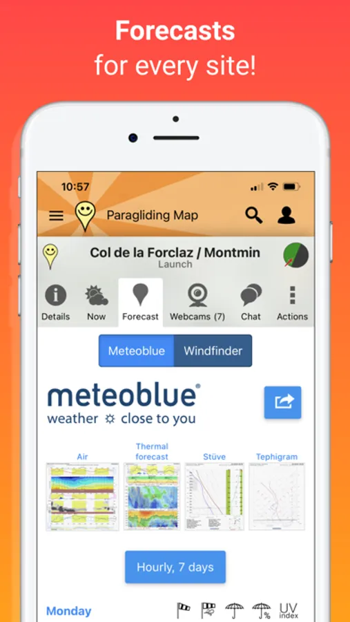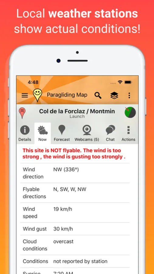 ▪ Real-time weather station data from Pioupiou, Holfuy, MADIS and FFVL show you actual weather conditions.