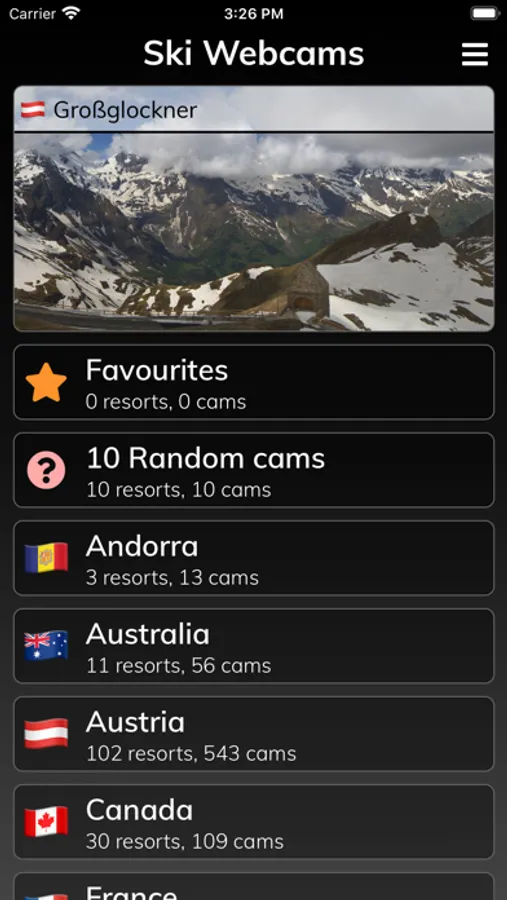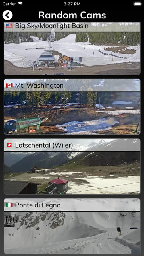 There are currently over 2500 webcams available from over 400 resorts worldwide, and if your resort isn't available then there is a suggestion feature within the app.