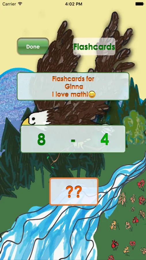 Math In A Flash is an app for elementary school children to learn and practice math facts. You can select addition, subtraction, multiplication and/or division with numbers 0 - 12. It was built for both the iPhone and iPad. It can be used in either portrait or landscape orientation. The app has an eagle/eaglet theme and when a practice area is done, the app plays sounds of real eagles talking to each other.