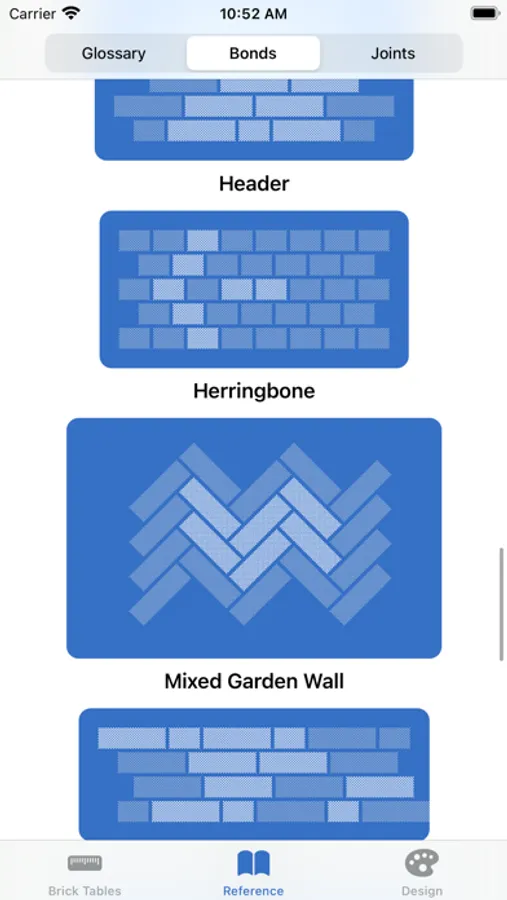 Brick it Pro is a reference guide for building professionals containing interactive brick tables, bond patterns and joint profiles.