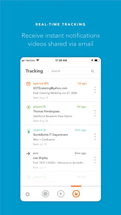 * Get email open, link click, and video play alerts within the app, as well as push notifications