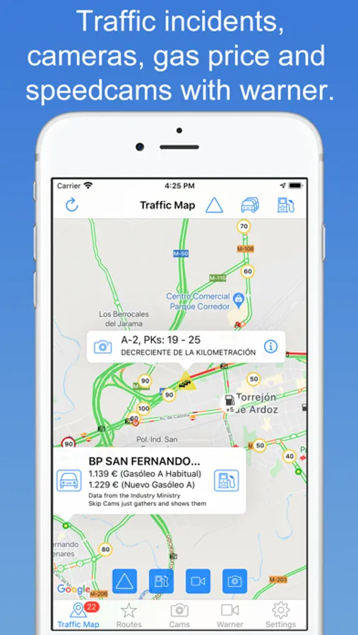 The best Speedcam Warner, with traffic information and gas prices in Spain.