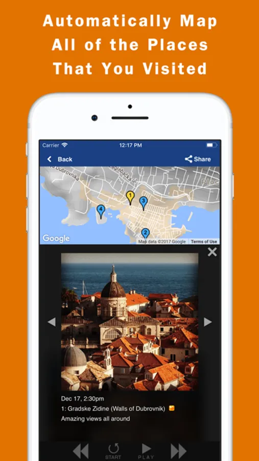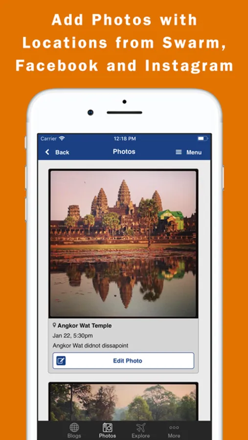 Upload multiple photos that you take offline and Jauntlet will automatically use the time and location of the photos to display them on your travel map and journal.