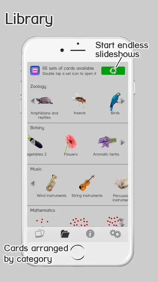 SmartBits is an Educational Stimulation App designed for children between 4 months and 6 years old based on the Doman Method Program of Encyclopedic Knowledge.