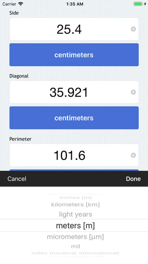Built-in unit converter makes it a snap to calculate and convert from any length or area units.