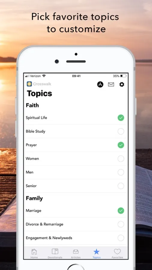 The Crosswalk.com app allows YOU to customize the content you consume! It's quick and easy to set your home screen with the topics you want to read about and to mark as favorites the articles you want to save and read again later.