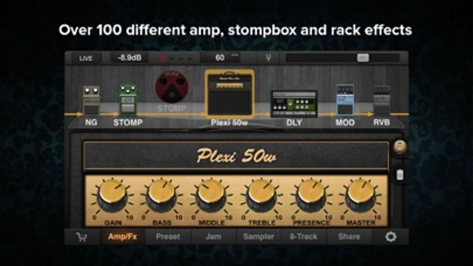 ● Additional 52 amp channels and 50 effect models (via in-app purchase expansion packs)