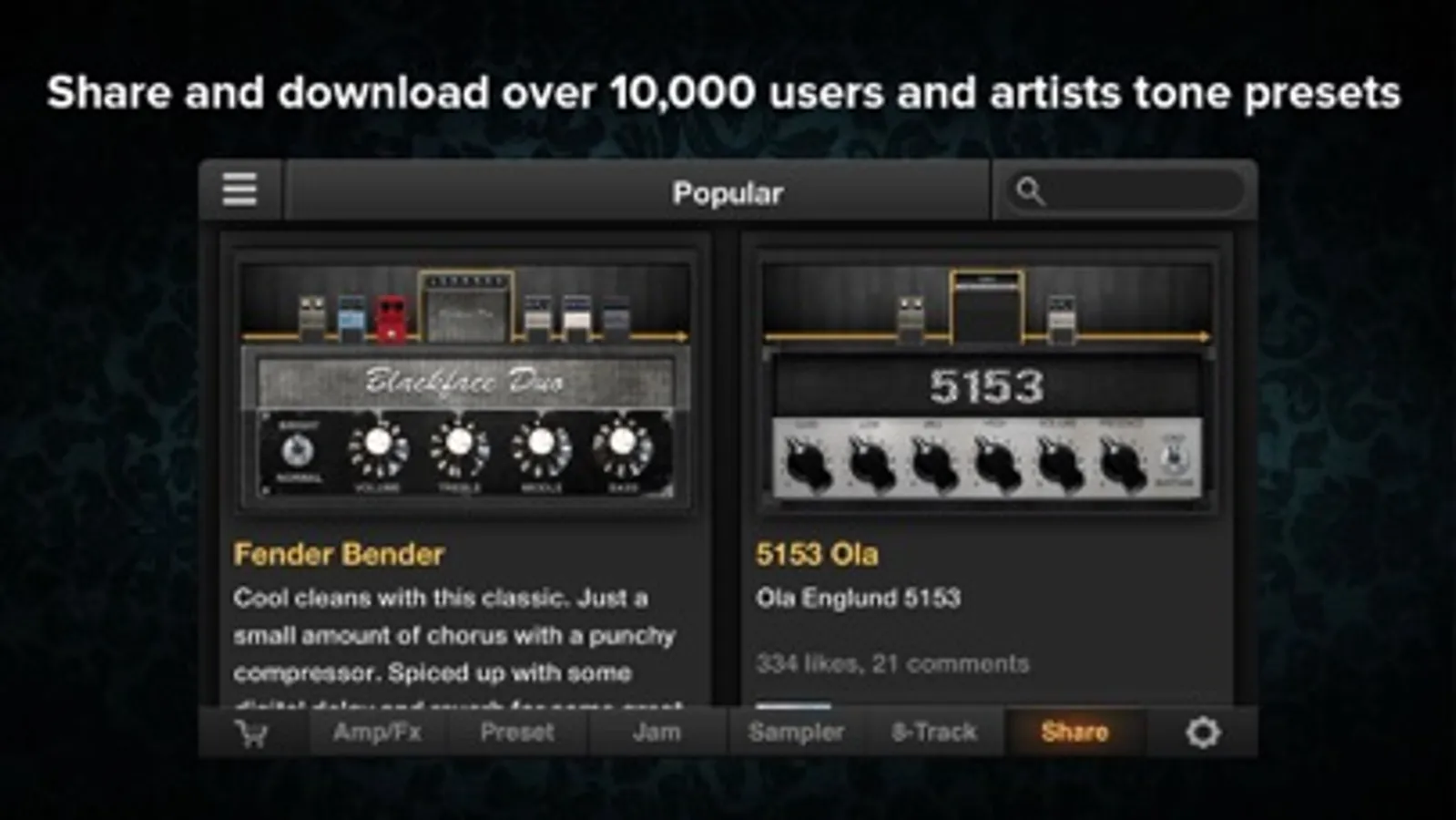 ● Tone sharing, allowing you to download over 10,000 artist and user presets or share your own