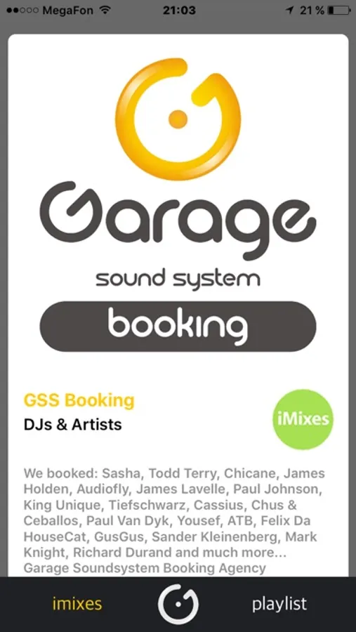 of Garage Soundsystem. Tons of high-quality tracks with the links to iMixes.ru catalog in iTunes. News, fresh releases, and music events.