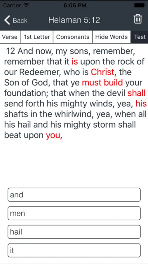 Memorize scripture verses and review previously added verses. Previously added verses are automatically scheduled for review (see review schedule below).
