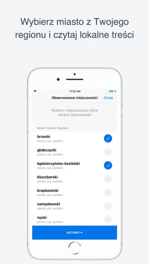 • Wygoda! Wybierz miejscowości, które chcesz obserwować, aby szybko dostać aktualności i informacje lokalne