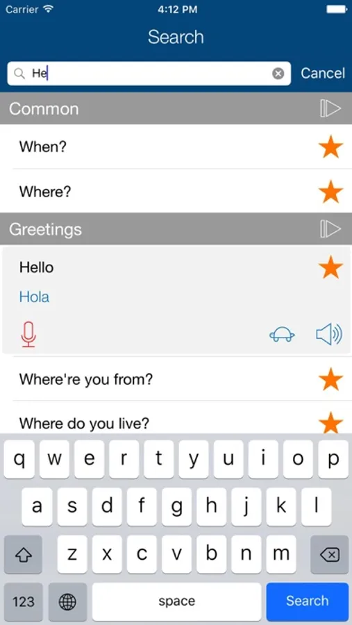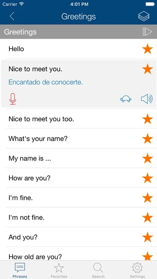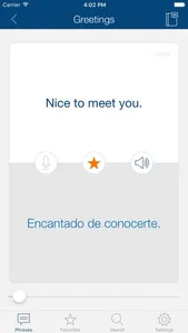 When you tap a phrase, the app speaks it aloud. There is no guessing as to how to pronounce the words. And if the app is talking too quickly for you, simply tap the snail/turtle icon to hear the words more slowly. Listen to pronunciation recorded by native speaker and then record and play back your own voice to practice your foreign language speaking skills!