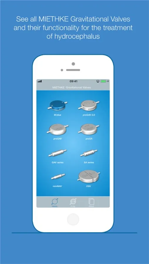 Valves which are demonstrated in this app are - M.blue, proSA, proGAV 2.0, proGAV, GAV 2.0, GAV, paediGAV, miniNAV, SHUNTASSISTANT 2.0, SHUNTASSISTANT and the DSV.
