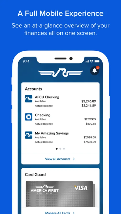 Take control of how, where, and when your America First Visa is used. With Card Guard, you can set geographical or spending limits, and get alerts whenever a transaction takes place.
