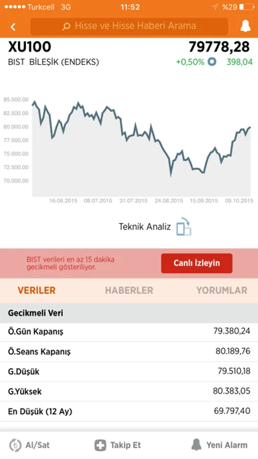 Portföy yönetiminizi kolaylaştırmak için, Borsa İstanbul'da takip ettiğiniz hisse belirlediğiniz fiyata geldiğinde otomatik olarak bildirim alabilirsiniz.