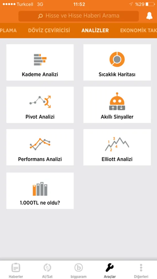 Bigpara mobil uygulamasında ayrıca tahvil, varant piyasası, dünya borsa endeksleri, teknik analizler, emtia bilgileri ile uzman yorumlarını takip edebilirsiniz.