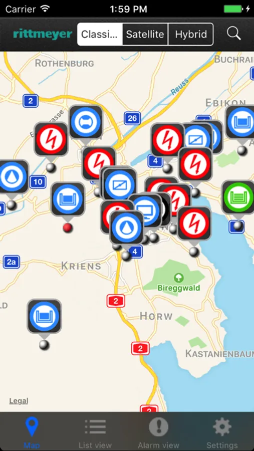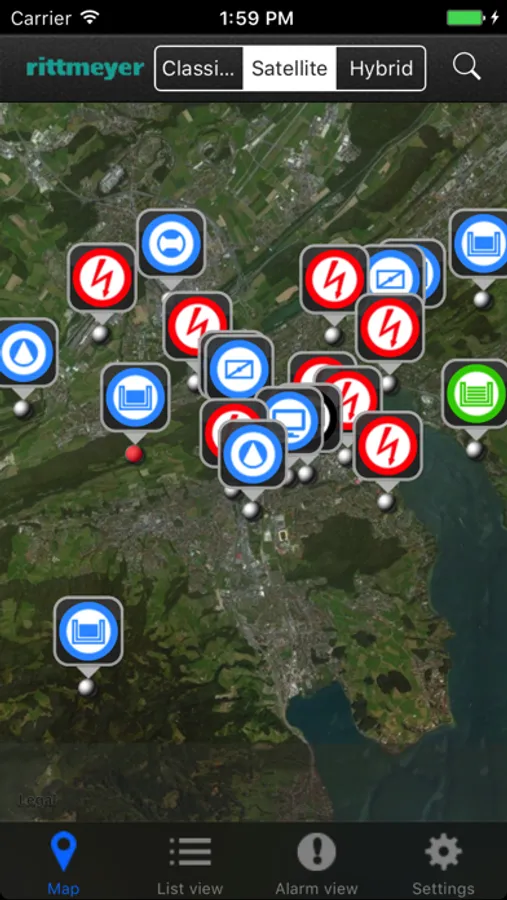 iRITOP is a useful application for water supply, waste water or hydro power plants that are using RITOP for the process control. The on-call staff get a quick overview with their critical alarms and characteristic numbers of the plant objects. This information is related to the plant objects, which are shown at their correct geographical position.