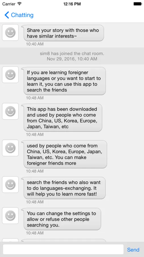 3. This app has been downloaded and used by people who come from China, US, Korea, Europe, Japan, Taiwan, etc. You can make foreigner friends more easily by using this app.