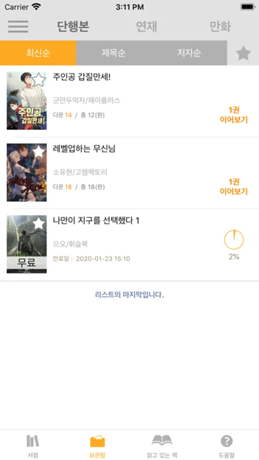 보관함에서 다운받으신 책의 읽은 분량을 알 수 있습니다.