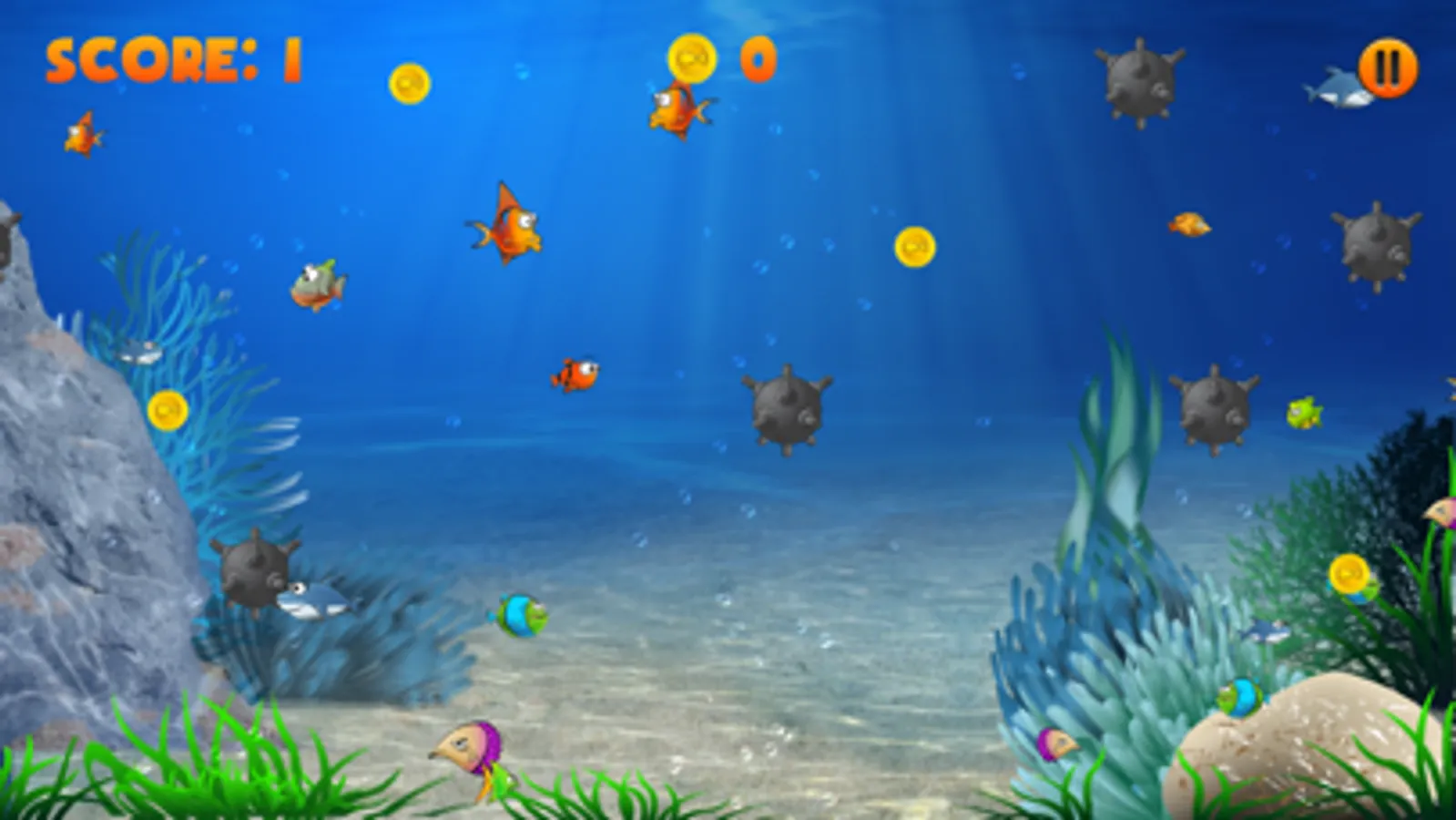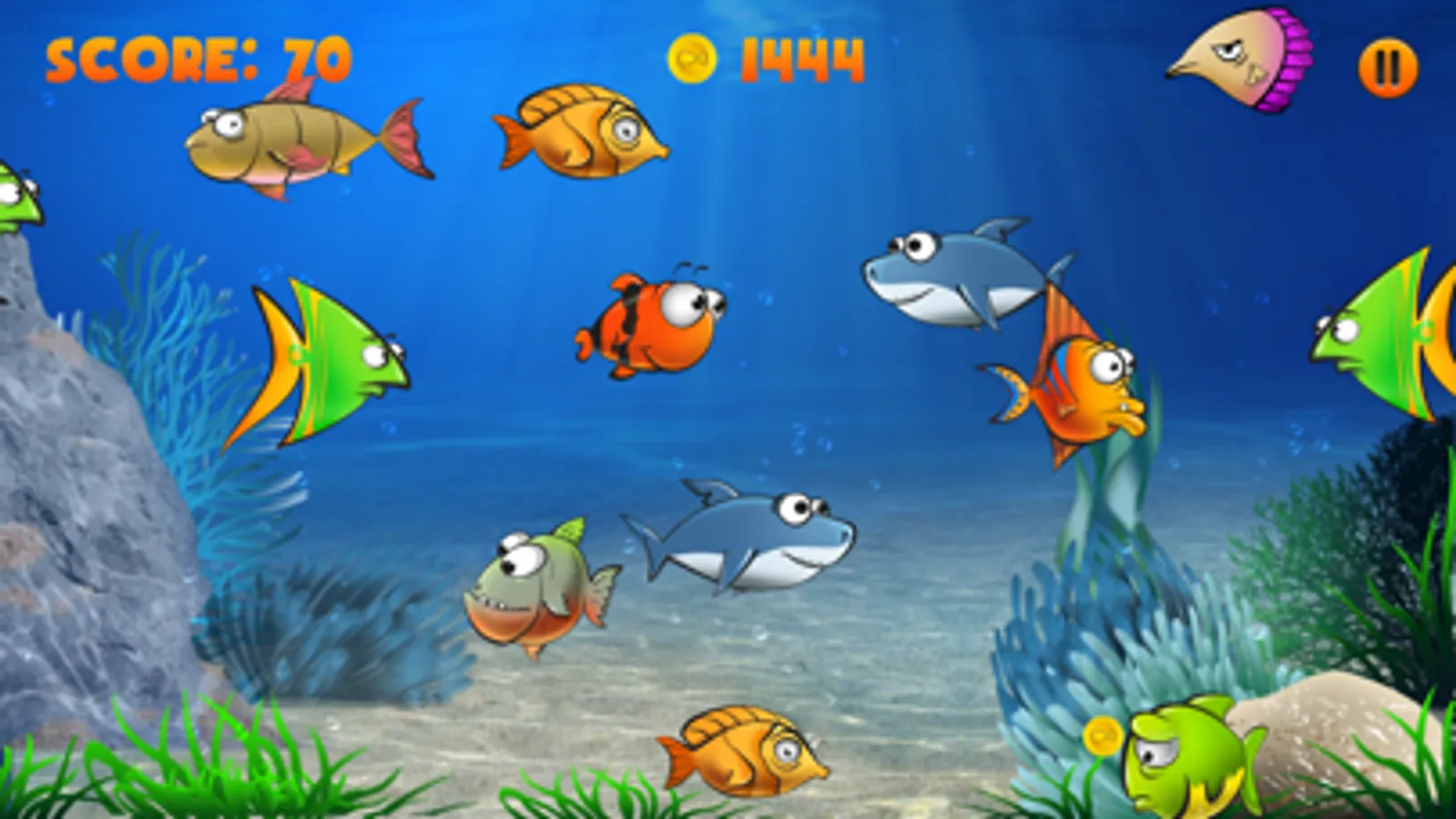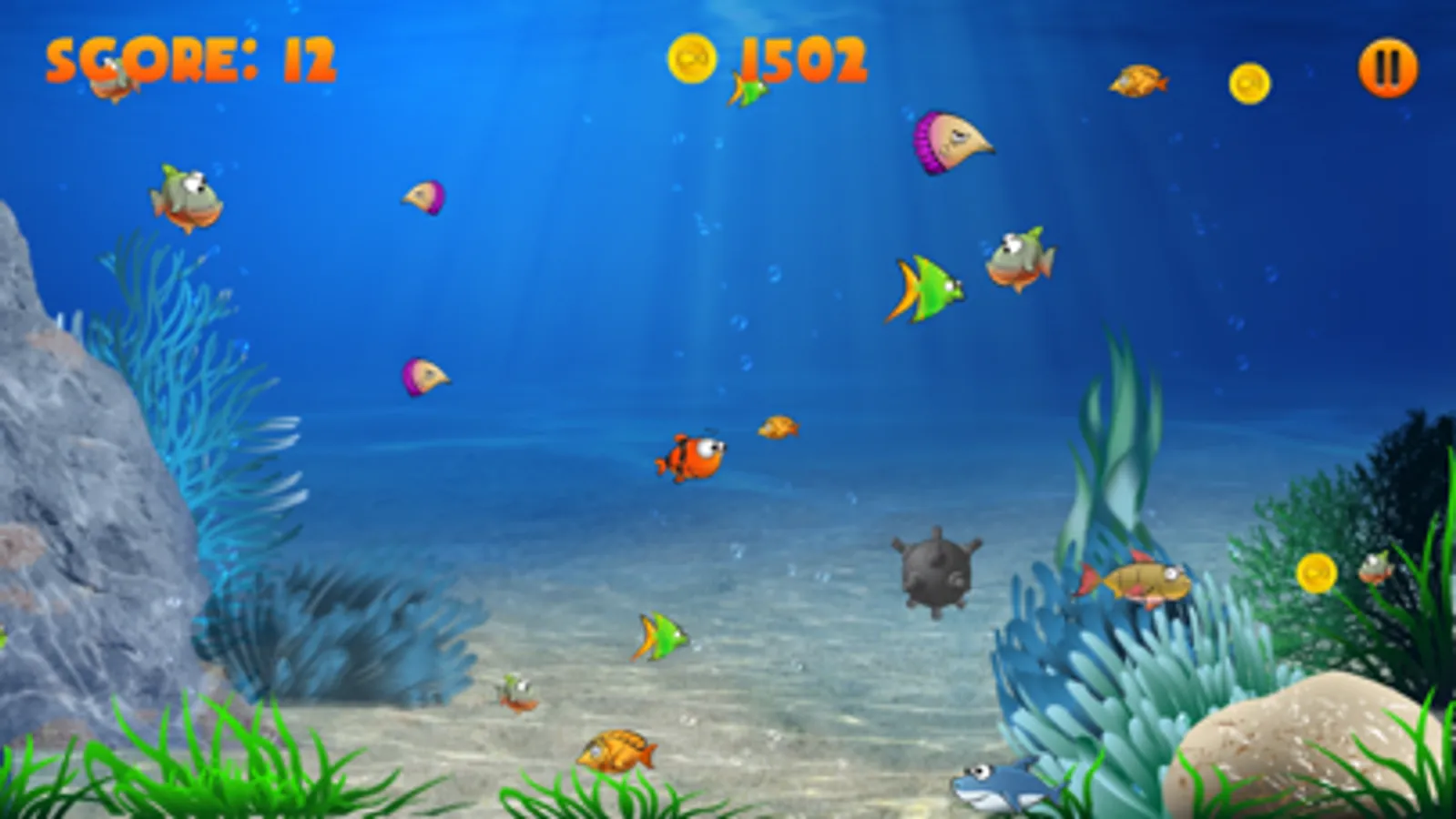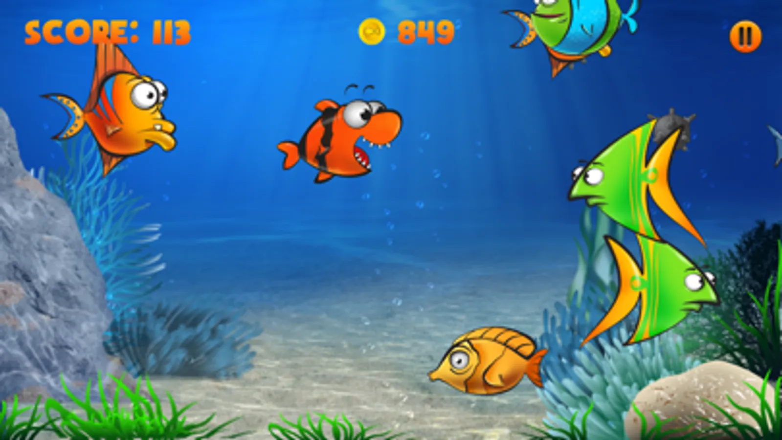 Different fish kinds are attacking him, so you have to help him to attack first! By eating smaller fishes he is getting bigger and bigger.