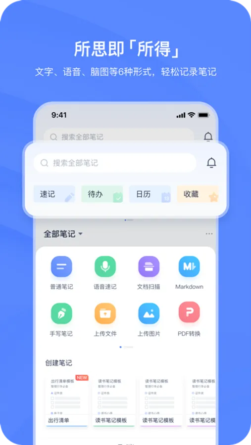 有道云笔记是一款多平台记录工具,通过扫描、语音、Markdown、收藏等记录方式,为亿万优秀用户提供助力。