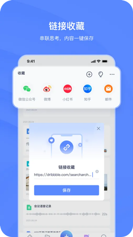 微信、微博、知乎、新闻等内容一键收藏到笔记;