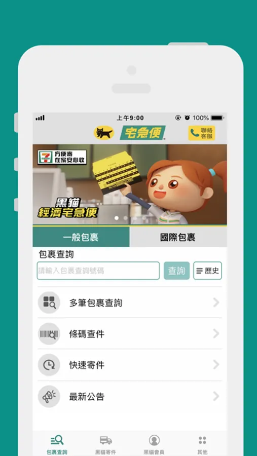 ●只要點選「聯絡客服」按紐,您就可以直接用手機快速撥通黑貓宅急便客服電話,可預約到府收件或查詢各項服務。(電話號碼為412-8888;手機直撥加02)