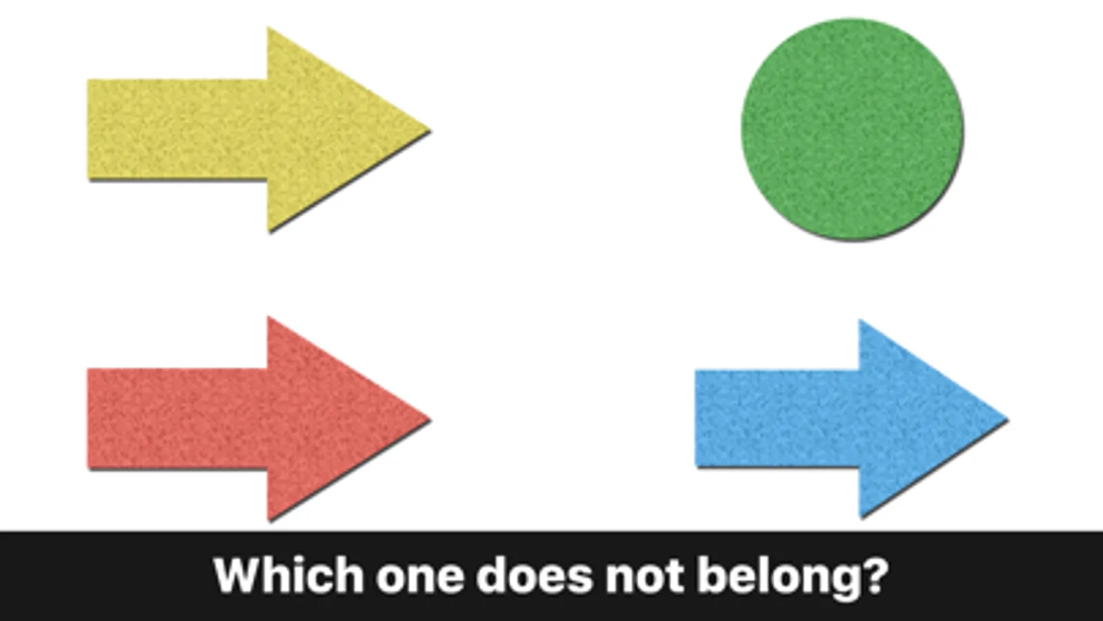 The "what does not belong apps" do the opposite of the basic Touch and Learn applications. Instead of asking kids to find "the circle" or the "red square" the "what does not belong apps" display 4 images and require the child to identify the one item that is different. The difference could be due to the color, name of the object, type of object or concept being presented.