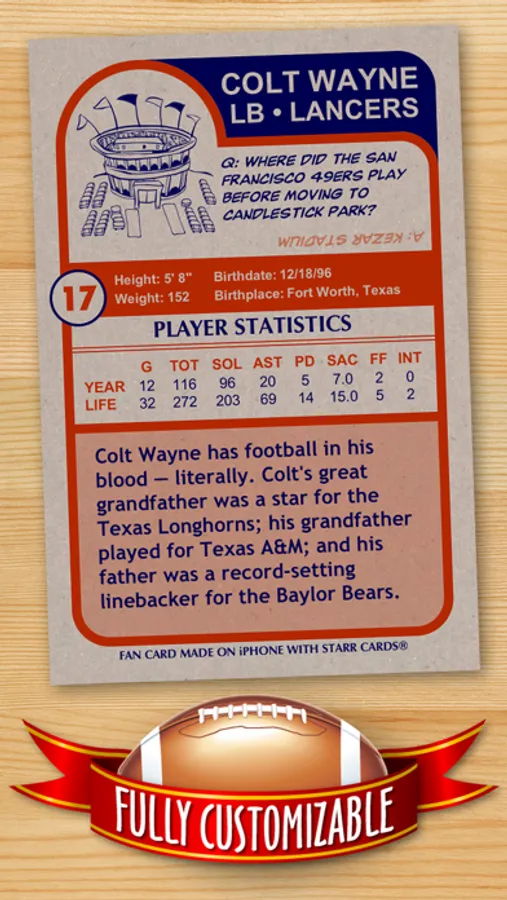 Starr Cards has custom stat formats for each player position, and even a special landscape-mode for producing team cards. No detail is left unattended — each and every card is sure to be a collectable keepsake.