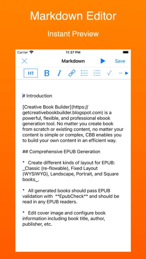 Creative Book Builder is a powerful, flexible, and professional ebook generation tool. No matter you create book from scratch or existing content, no matter your content is simple or complex, CBB enables you to build your own content in an efficient way.
