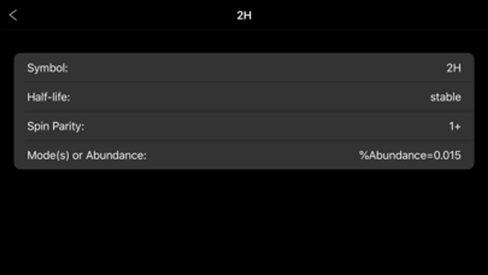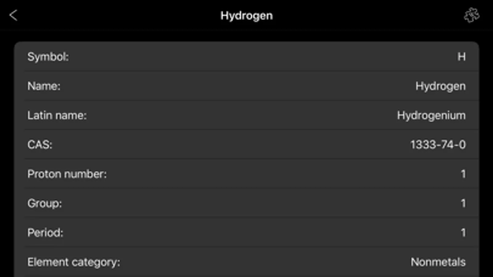 Each element has over 25 properties including isotopes, picture of element, melting point, boiling point, latin name, national name etc. plus each element include link to wikipedia in all supported languages which you can set in menu.