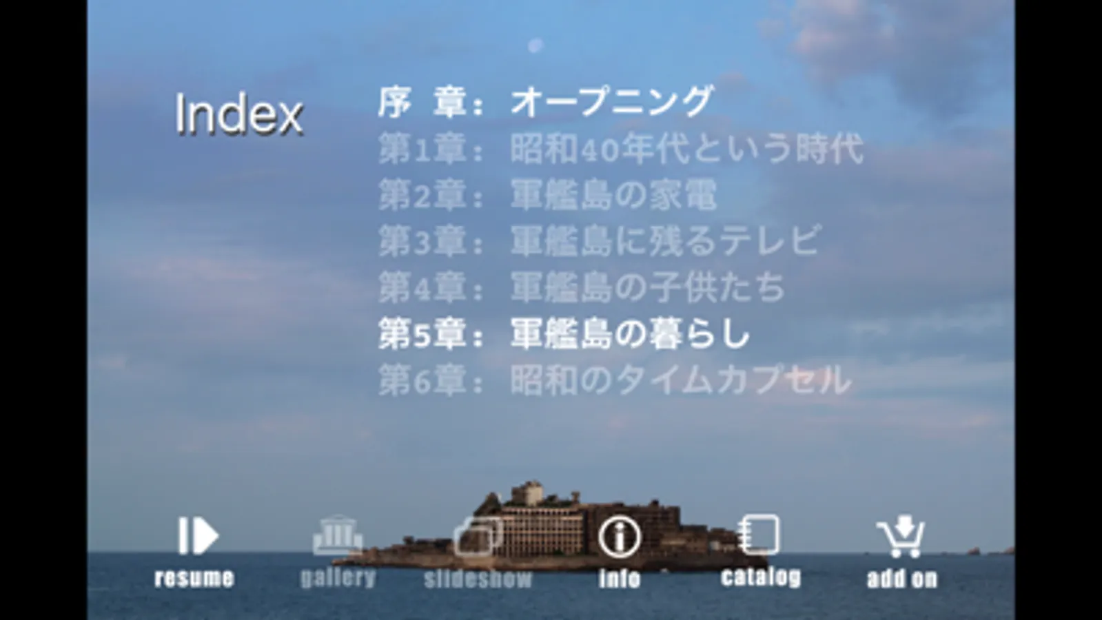 『軍艦島』を約10年にわたって、DVD、書籍、ウェブ・サイト、イベント、エキシビションなどあらゆるメディアを駆使して伝えて来た軍艦島の伝道師オープロジェクトが、満を持してお贈りする軍艦島の総合オーディオブックシリーズ『軍艦島黙示録』。