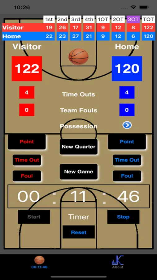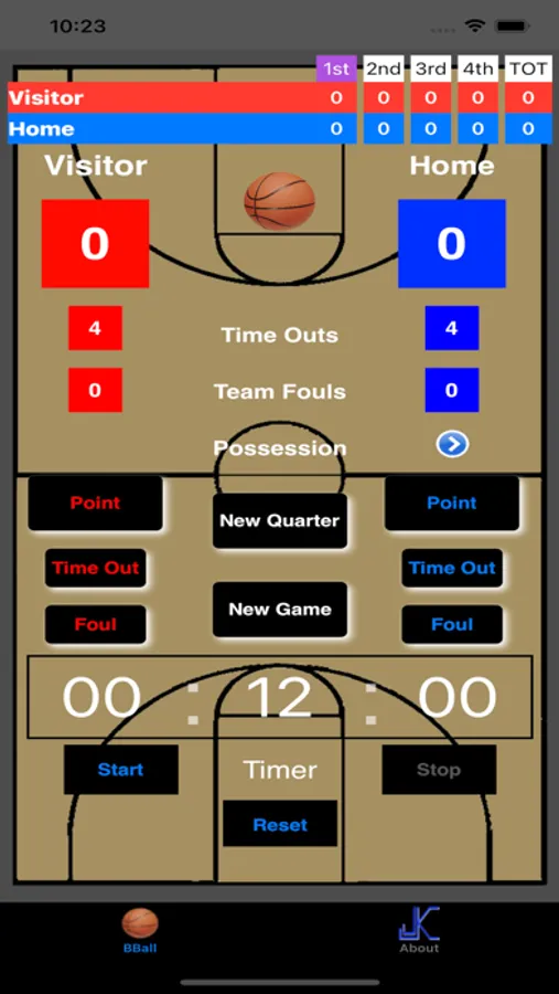 Ever needed a score keeper for your basketball game? Well look no further as this app will keep track of both teams score, number of team fouls, and even who's possession it currently is.