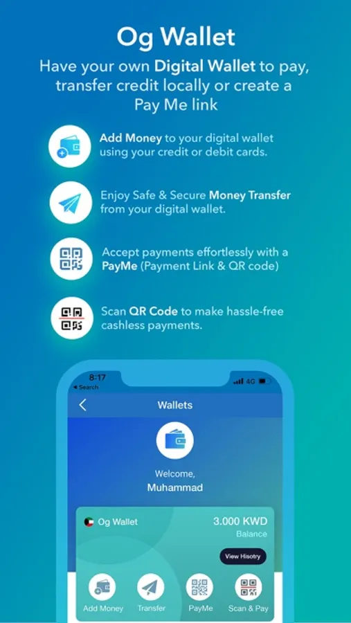 Og Money is a new era of mobile financial services. It offers a one-stop-shop for all your bill payments, top-ups, utilities, fees (governmental services) in smart, easy and ubiquitous payment experience. In addition, international mobile operators’ recharge for more than 21 countries worldwide. Og money offers its services in multi countries in Kuwait, Bahrain, Jordan, Lebanon, Egypt and KSA.