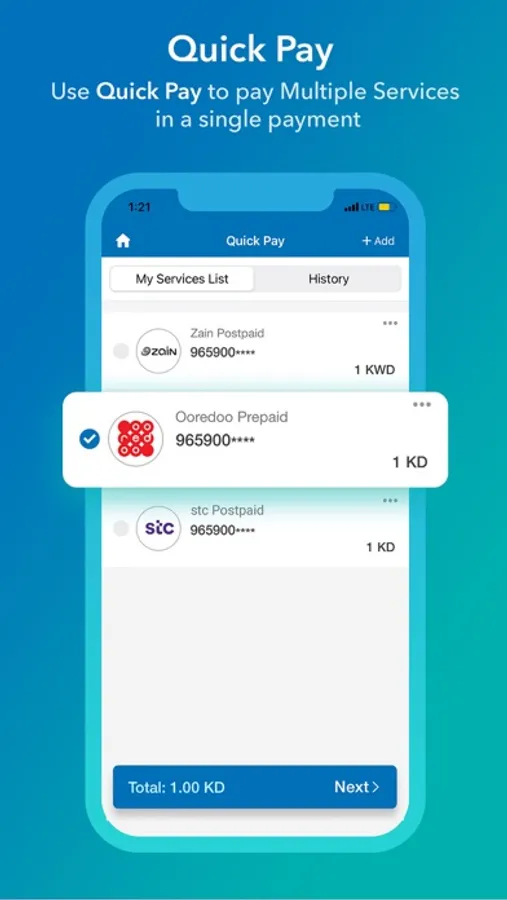 Customize a list of all your payments, bills, and services and pay them all at once with one simple touch!