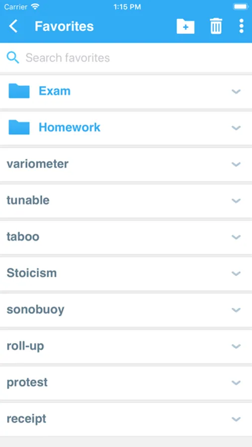 • ‘Favorites’ that allow you to create custom folders with lists of words.