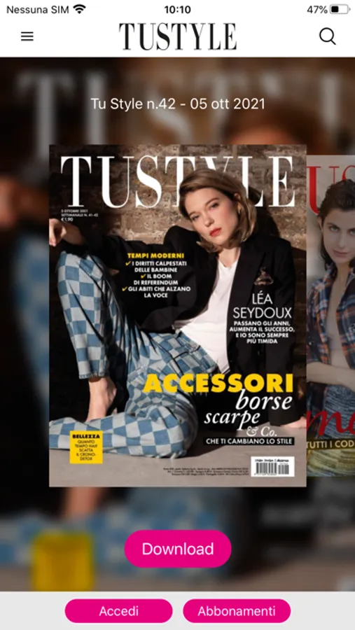 • Se hai un abbonamento attivo a TuStyle, potrai sfogliare la rivista anche su questa App! Effettua il login (da Menu – Account – Login) e portala sempre con te!